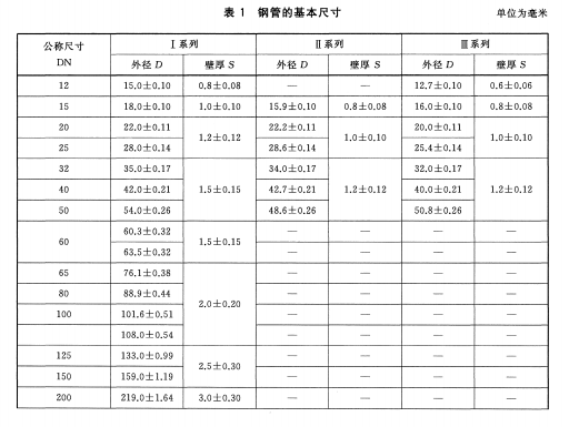 3.1 钢管的尺寸与偏差应符合表 1 的规定。